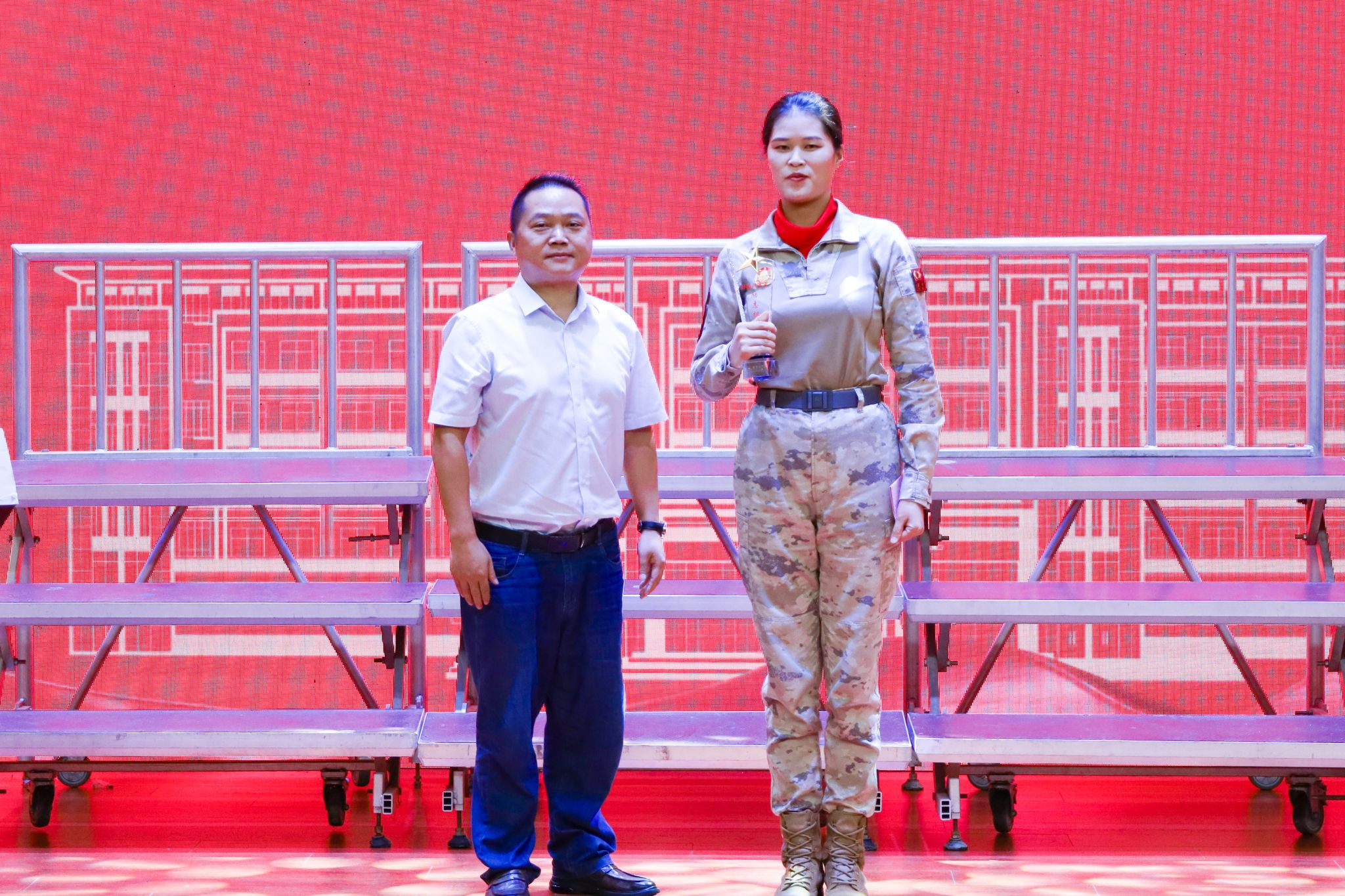 党委书记徐华胜为老生代表93阅兵参与者、商务英语2023级1班谭宁颁发“香港六合彩现场直播