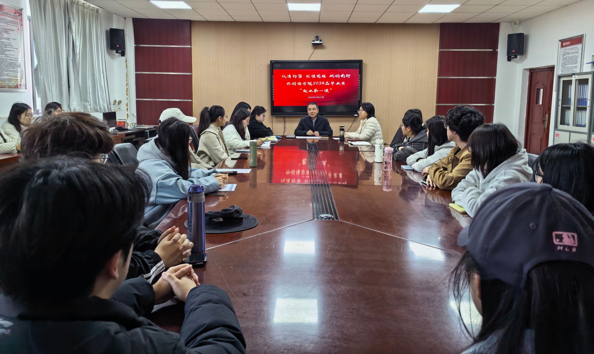 2026年春季学期“就业第一课”于E304会议室开讲。学院院长江加宏、党委副书记何媛君、全体毕业班辅导员及2026届毕业生代表参加。