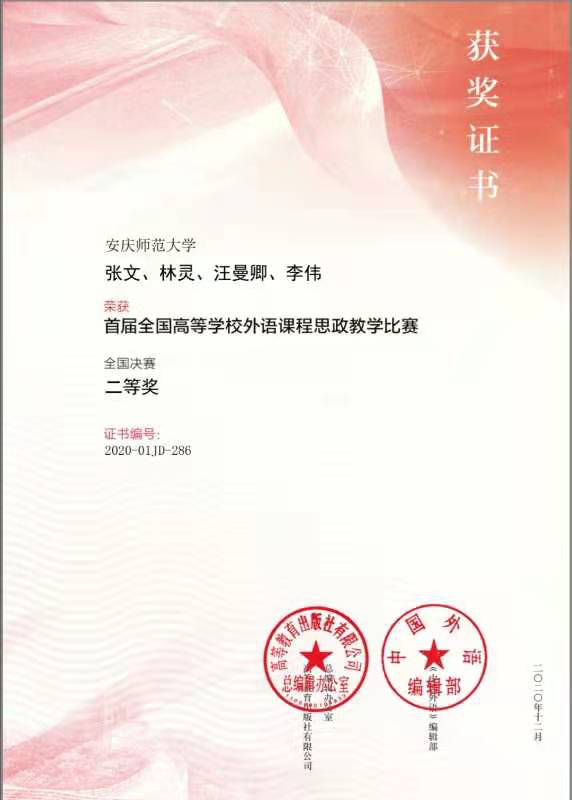自今年6月以来,张文教授带领团队成员积极备战大学英语课程思政教学大赛,在教学目标、课程设计、教学环节、课件制作等方面认真研讨、悉心打磨,并将皖江文化与课程思政有机结合,把文化自信、人格养成等思想政治教育导向与外语课程固有的知识、技能传授有机融合,发挥外语课程的育人功能。(撰稿/图片提供:林灵 审核:江加宏)