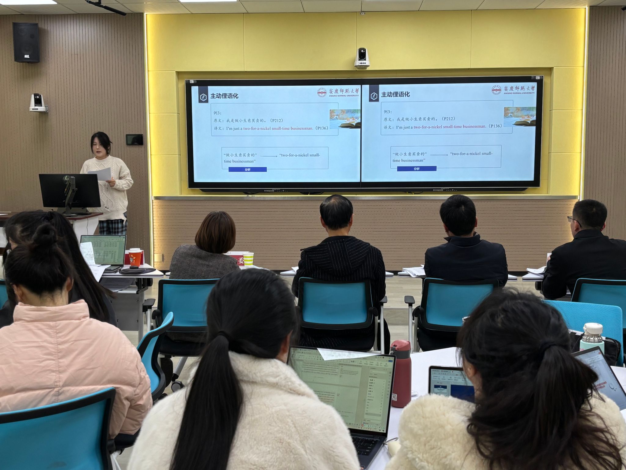 分论坛在E501教室顺利举行。活动特邀学院硕士生导师王先荣教授、张玮副教授、唐尔龙副教授、操萍副教授和杜星池博士共同组成评审专家组,学科教学(英语)与英语笔译两个专业近30名硕士研究生参加此次活动。