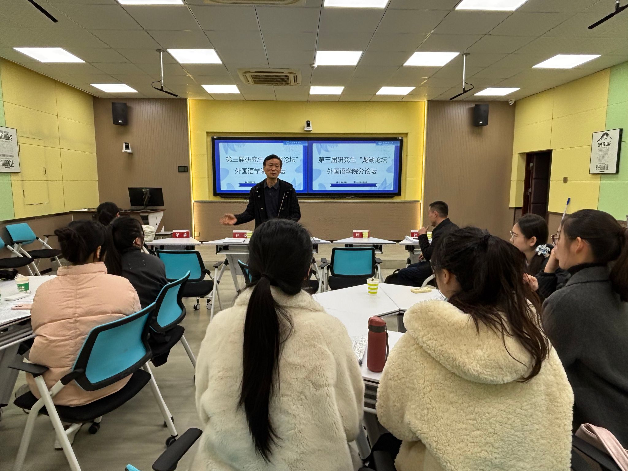 研究生搭建了高质量的学术交流平台,不仅锻炼了同学们的科研汇报能力、深化了对专业领域的研究认知,更促进了师生间的学术探讨与经验传承。未来,学院将持续以“龙湖论坛”为纽带,常态化开展学术交流活动,鼓励研究生勇于探索、大胆创新,不断提升科研素养与学术水平,为培养高素质外语专业人才筑牢根基。(摄影、撰稿:黄蓓蓓,审核:黄全灿)