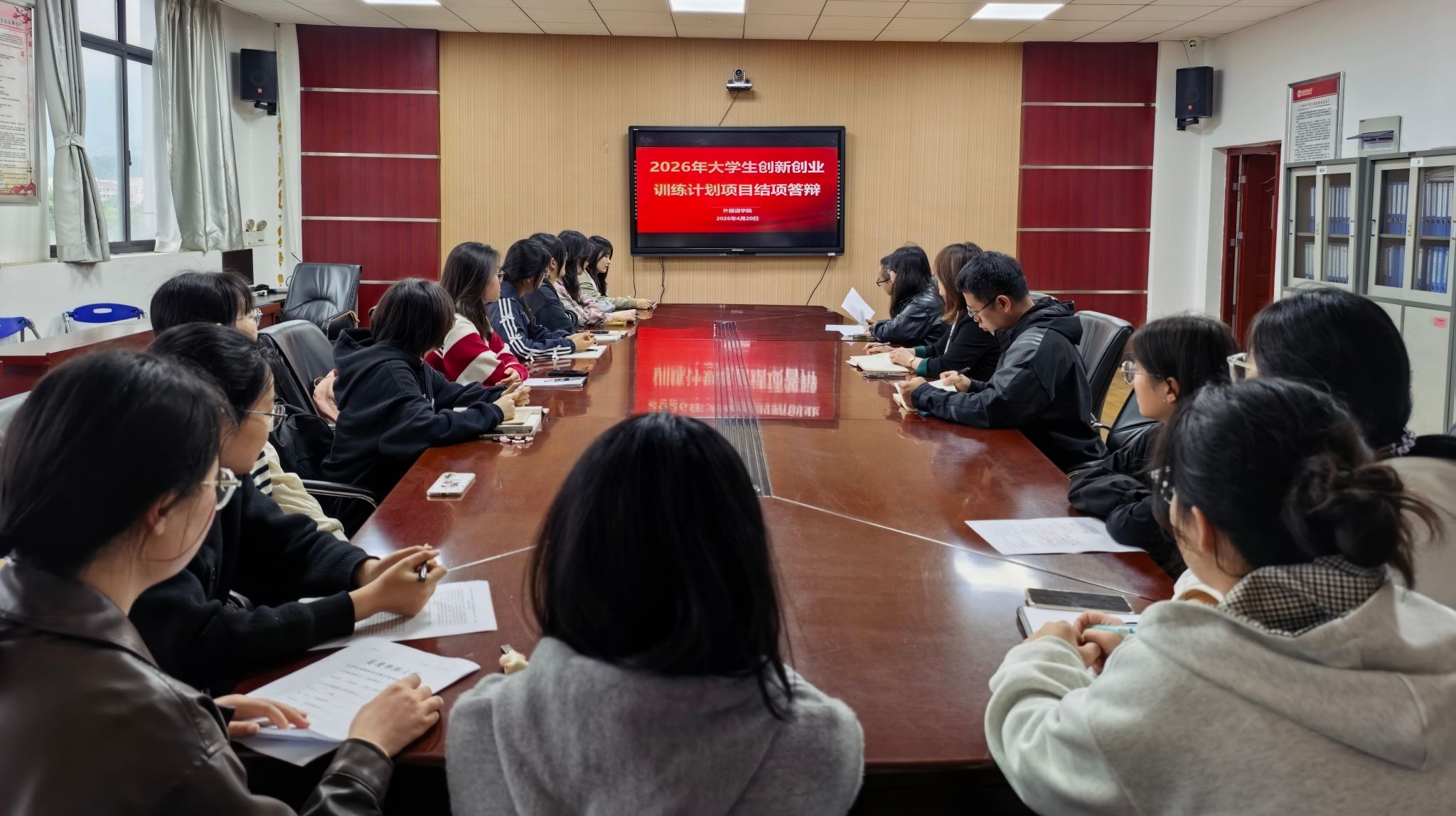 在E304会议室组织开展2026年大学生创新创业训练计划项目结项答辩会,会议由学院副院长瞿宁霞主持。